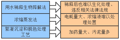 目前,這類染料廢水的處理方法主要有三種:用水稀釋生物降解法、濃縮蒸發(fā)法、結(jié)合絮凝沉淀和脫色處理工藝,但都存在一些問題。